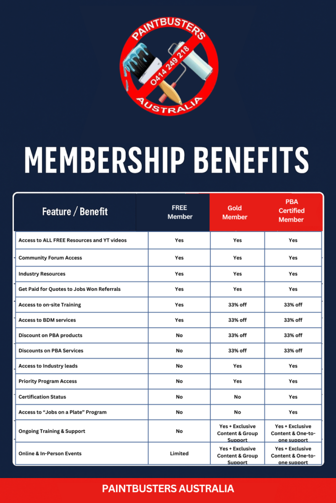At Paintbusters Australia, we’re committed to supporting painters at every stage of their careers. Whether you’re seeking apprenticeship opportunities, looking to develop specialised skills, or ready to establish your own business, we’re here to provide the guidance and resources you need to succeed. Contact us today to discover how we can support your painting career journey.